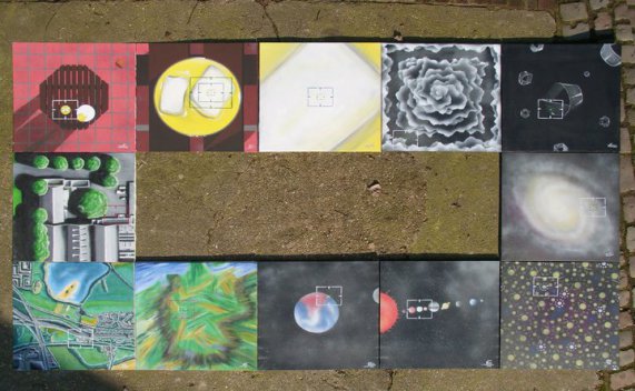 Das letzte Bild zeigt dann wieder das erste. Auseinandersetzung mit der Unendlichkeit und der Stringtheorie von Stephen Hawkin. Verbleib bisher beim Künstler. Wurde diverse Male verliehen für Ausstellungen.
