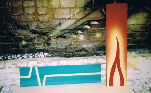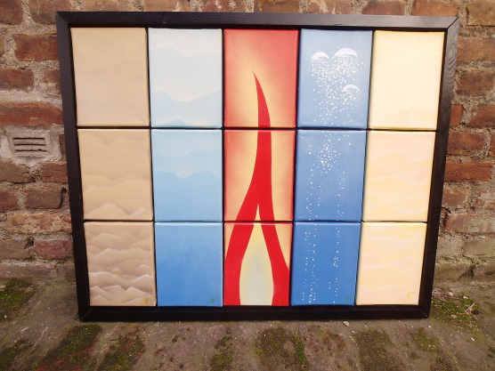 12 teilger geschlossener Bilderzyklus für einen runden Raum. Bestehend aus 12 Leinwänden 80cm X 80cm in Mischtechniken bemalt.