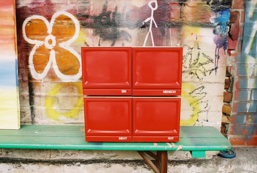 Leinwände, Backpieces, Skulpturen, Installation, Videos etc.