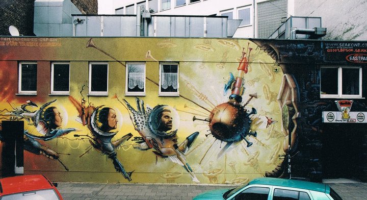 Insgesamt ca. 80qm Wandfläche so gestaltet, das man den Eindruck hat man blicke vom Osten in den Westen.