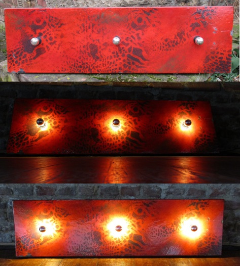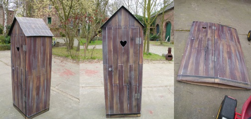 Mischtechnik mit Applikationen auf einer Holz Toilettentür.