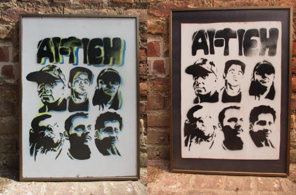 Schablone, Sprühdose auf diversen Materialien.