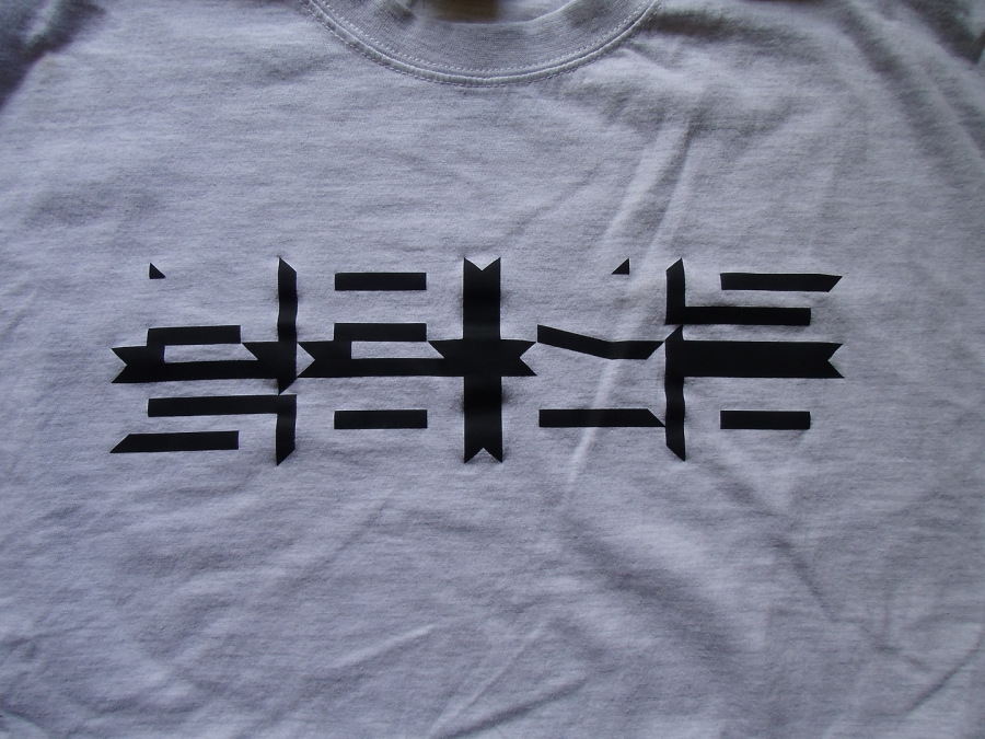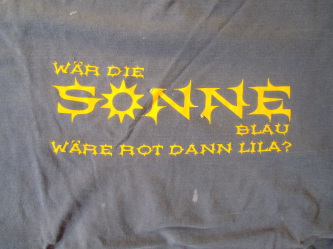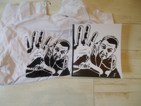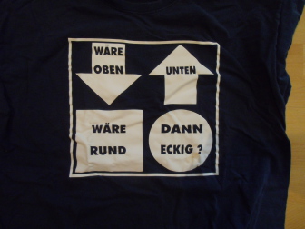 Mit Textilfarbe bemalte T-Shirt Front. Auflage: 6 Stück.