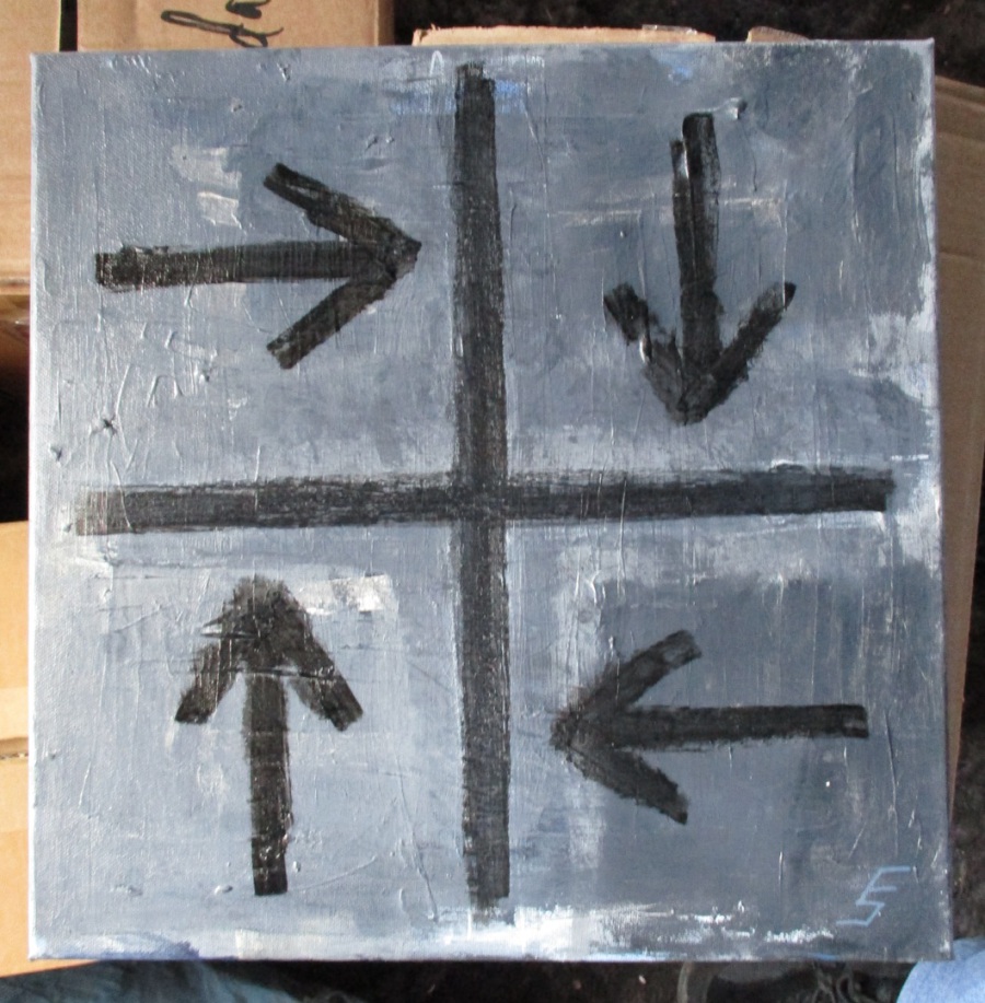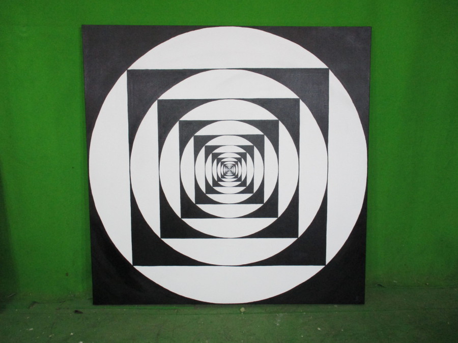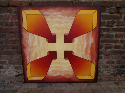 Sprülack, Schablone, Marker auf Leinwand. 100cm X 100cm.