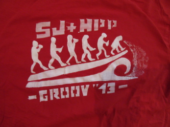 Flexdruck auf T-Shirts für das Team Titanic beim zweiten Floß und Surfcontest auf der Groov.
